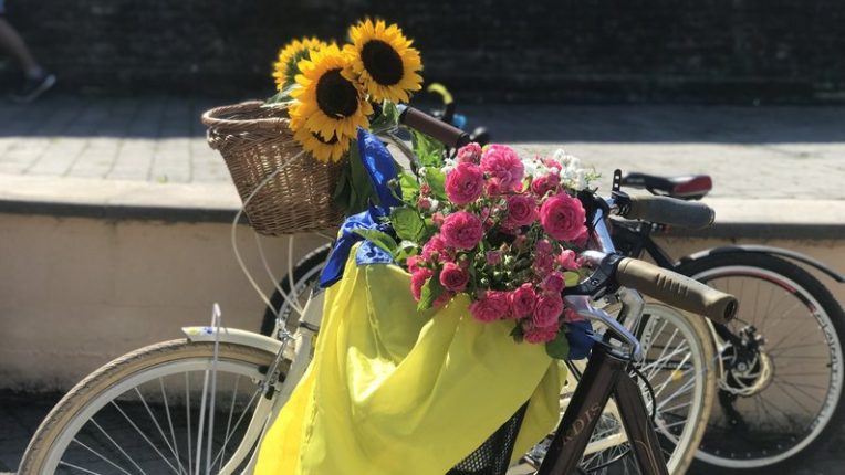 “У нас є різні категорії волонтерів, які долучаються до виготовлення маскувальних сіток: студенти, діти, вимушені переселенці та родини загиблих військових. Ми щовихідних плетемо сітки у парку імені Шевченка — якраз сьогодні там фінішуємо і продовжимо свою роботу, а охочі зможуть долучитися. Я лише нещодавно навчилася їздити на велосипеді, тому до велопараду долучаюся вперше”, — говорить співзасновниця волонтерського центру “Маскувальні феї” Олена Черкас.