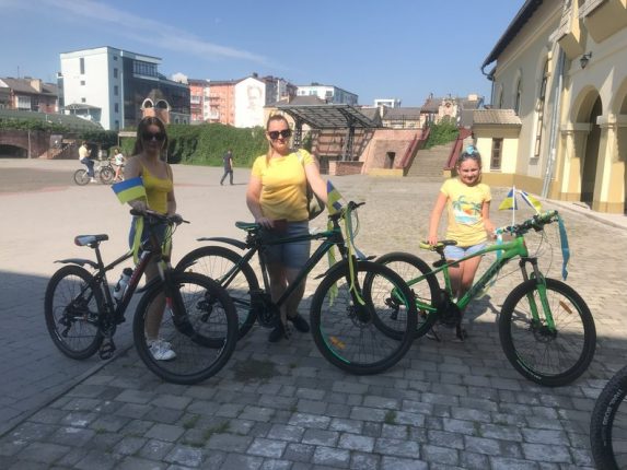 “У дочки вже з’явився велосипед. У мене є компанія, і я вирішила, що можна брати участь у такому прекрасному заході. Окрім того, він має благодійну мету. Ми дякуємо нашим військовим за можливість бути тут, за те, що вони нас оберігають”, — говорить Катерина Сантар.