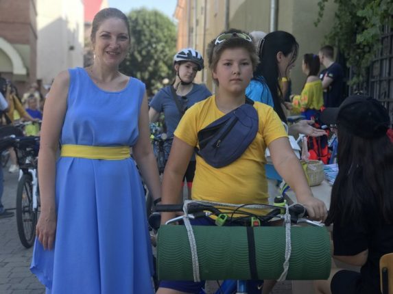 Жителька Івано-Франківська Лілія Васильєва до велопараду дівчат долучається уп’яте. Щороку її супроводжує син.