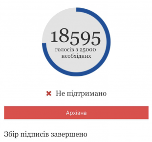 Станом на 19 липня збір підписів завершено. З 25 000, необхідних для розгляду, петицію підписали 18 595 осіб. Таким чином, петиція вважається не підтриманою, і її перенесли в архів.