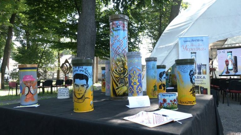 На творчість Ірину Липень теж надихнула війна. Волонтерка каже: якось чоловік привіз тубус на згадку, тож вирішила його розмалювати. З цього все почалося.