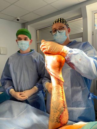 «Це ортопластична хірургія. Під час війни трапляються травми з великими дефектами, які тяжко закрити клаптем, або неможливо зашити. Рани великі і глибокі, тому їх можна закрити тільки таким способом», – розповідає Андрій Стуй.