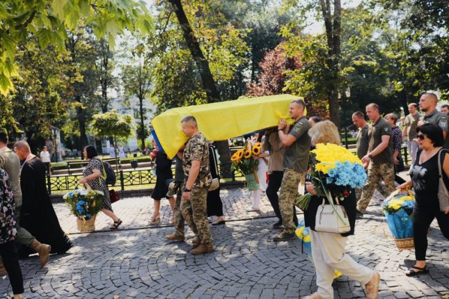 В Івано-Франківську попрощалися із загиблим військовослужбовцем Остапом Бринським. Воїн загинув поблизу Бахмута 19 серпня 2023 року під час мінометного обстрілу військовими рф.