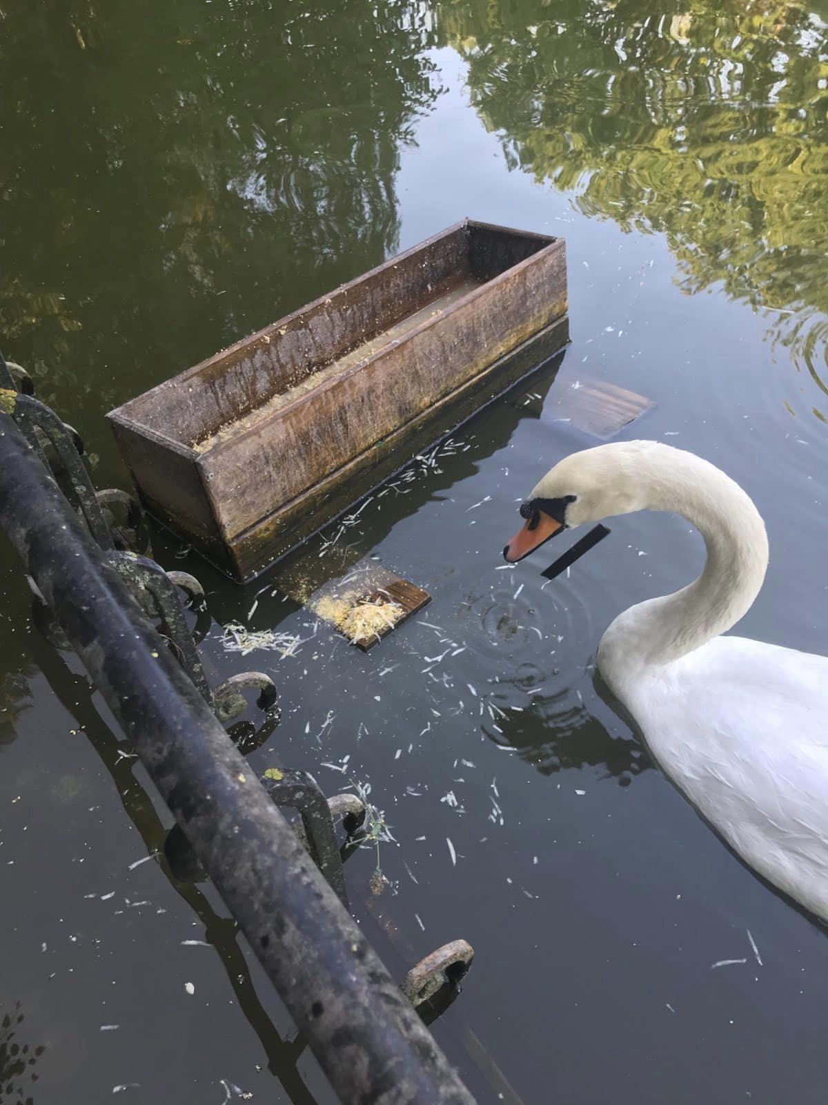 Попри заборону вилову риби в каскаді озер в парку Шевченка, деякі рибалки продовжують цим займатися. Через такі дії сталася прикрість з лебедем, він заковтнув частину знаряддя лову.