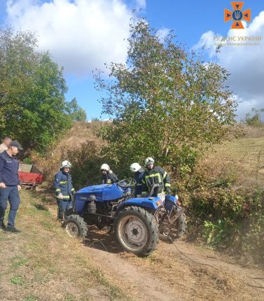 Рятувальники деблокували тіло чоловіка з-під перекинутого мінітрактора у полі.