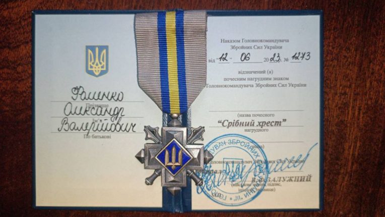 Високу державну нагороду – почесний нагрудний знак «Срібний хрест» від Головнокомандувача Збройних Сил України Валерія Залужного – отримав Олександр Фоменко.