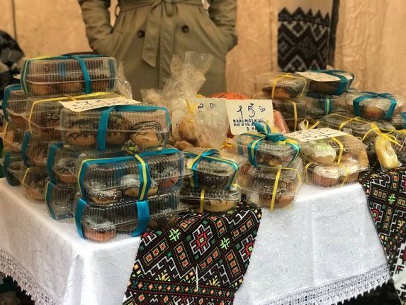 “Наші вироби є з м’ясом, капустою, лівером, повидлом, маком, яблуками — пухкенькі, гарненькі, смачненькі. Запрошуємо гостей у наш намет, аби мати змогу придбати для наших воїнів усе необхідне”, — говорить Любов Атаманчук.