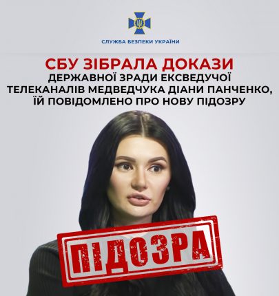 СБУ зібрала докази державної зради ексведучої телеканалів Медведчука Діани Панченко, їй повідомлено про нову підозру.