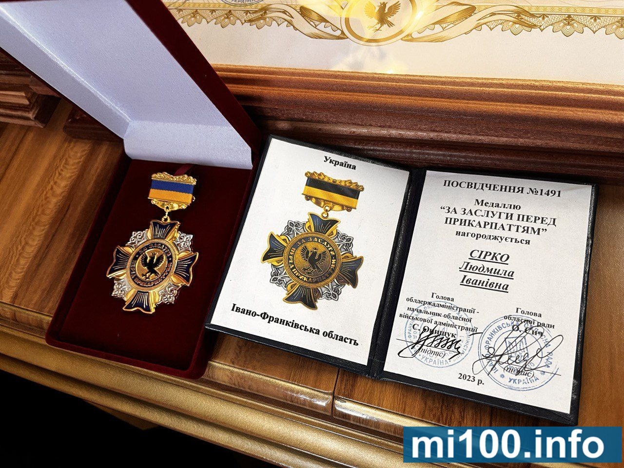 Медаль “За заслуги перед Прикарпаттям” відзначена Cірко Людмила Іванівна заступник голови Івано-Франківської обласної державної адміністрації.
