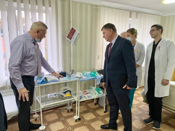 «Палату оснащили необхідним медичним обладнанням. Тут є кисневий концентратор, приліжкові кардіомонітори, дихальний апарат, дифібрилятор. Маємо пристрої, які використовуються при дихальній недостатності: апарати CPAP, як і BiPAP. Весь набір необхідних ліків, глюкометр, інфузомат, пристрій, який дозволяє дуже точно дозувати ліки. Є все для підтримання вільної прохідності дихальних шляхів, є набір для інкубації, такий же набір є у приймальному покої. Маємо також новітні пристрої, які дозволяють віддалено контролювати стан пацієнта: завантажується додаток на телефон, і хворий постійно під контролем лікаря. Ми таке оснащення широко використовуємо при наданні допомоги ЗСУ, в себе в реанімації ОКЛ, а тепер є уже і тут. Такі пристрої використовують в клініці Феофанії, де є багато поранених військових», – розповів Іван Тітов.