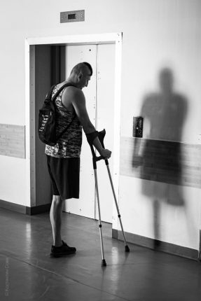 Зі стабілізаційного пункту військового доправили у госпіталь в Дніпро, а звідти через два тижні – у Івано-Франківськ, у відділення судинної хірургії обласної клінічної лікарні. У Дніпрі чоловікові ампутували ногу. Перші дні був на важких знеболюючих, переважно відключався, спав. До ампутованої ноги був підключений ВАК-апарат для вакуумної терапії ран, а з пробитих легенів – виведені дренажні трубки. Тож близько трьох тижнів пацієнт був лежачий. У торакальному відділенні йому зробили ще одну операцію і вже після неї Андрій почав підводитись, ходити на милицях.
