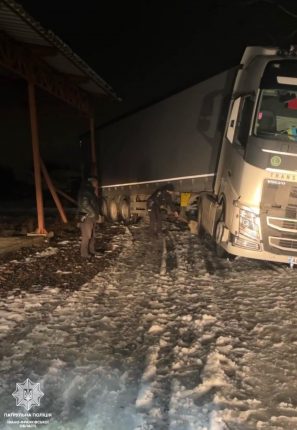 В Івано-Франківську вантажівка з’їхала у кювет. ФОТО