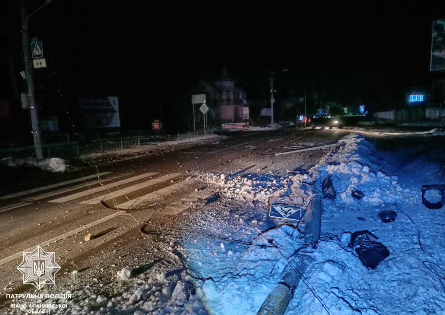 П’яний франківець наїхав на бетонну опору та дорожній знак. ФОТО