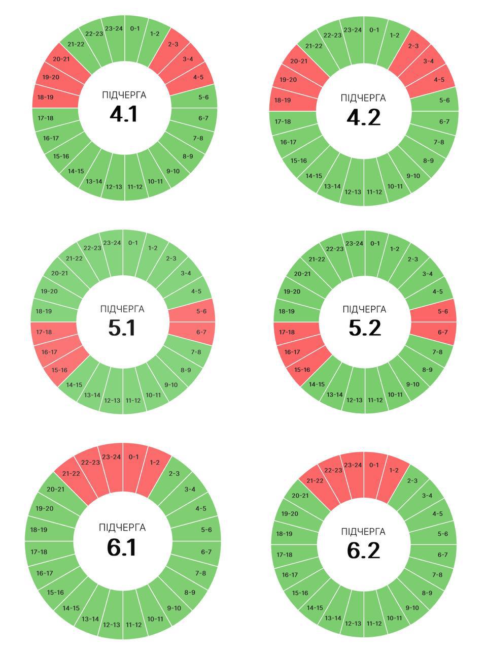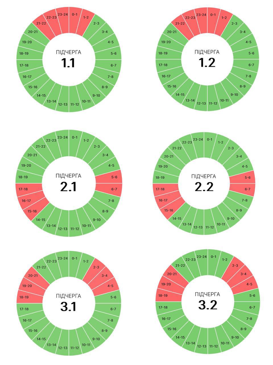 Натомість в інші години протягом доби будуть застосовуватися дві черги вимкнень одночасно.