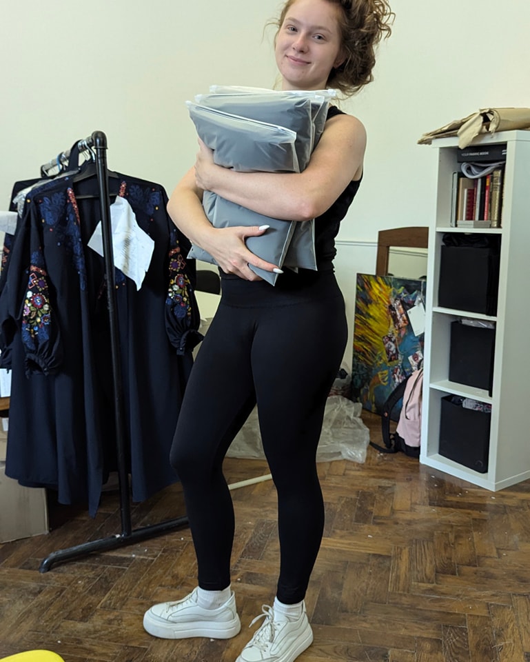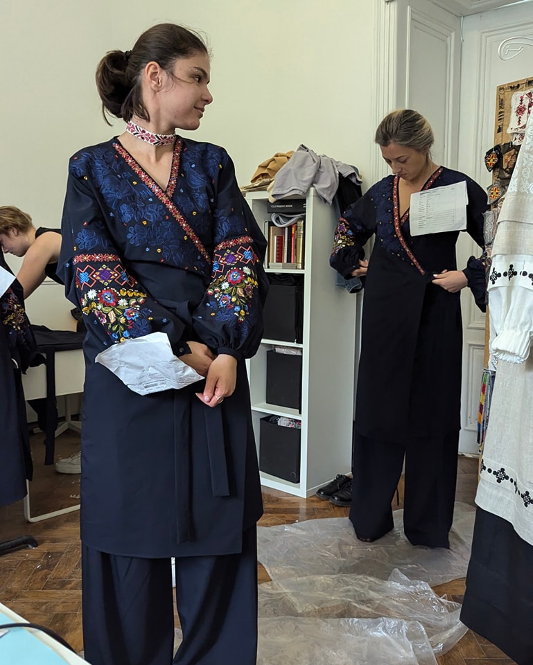 “Команду з футболу затвердили пізніше на тиждень і в складі вдвічі більшому, ніж очікувалось. Пакували ми це все 4 дні до 10 вечора вчотирьох. Ми пакували і пакували, а костюми ніяк не закінчувалось бо це 271 учасник і на мене нападав відчай, бо нові списки учасників все ще приходили. Але десь під кінець цієї двіжухи я вже пам’ятала багатьох спортсменів і вони відгукувались різними голосами в моїй голові. І от власне ми сьогодні завезли всі ці речі в Національний Олімпійський комітет у Києві за день до здачі. Жінкам – сукня “Ясна” з колекції 24 року, що була створена як результат експедицій Бойківщиною. Чоловікам – сорочка “Біла”, – розповіла Чернікова.
