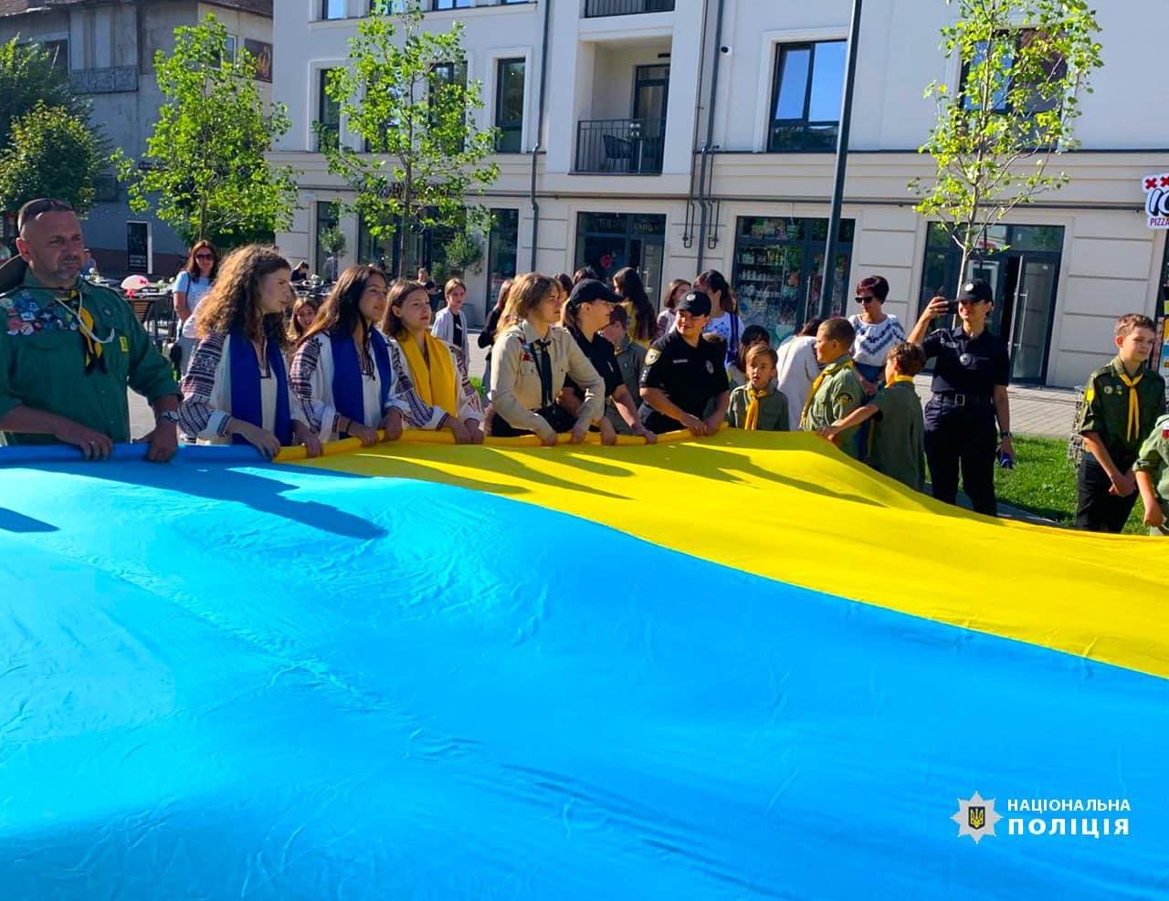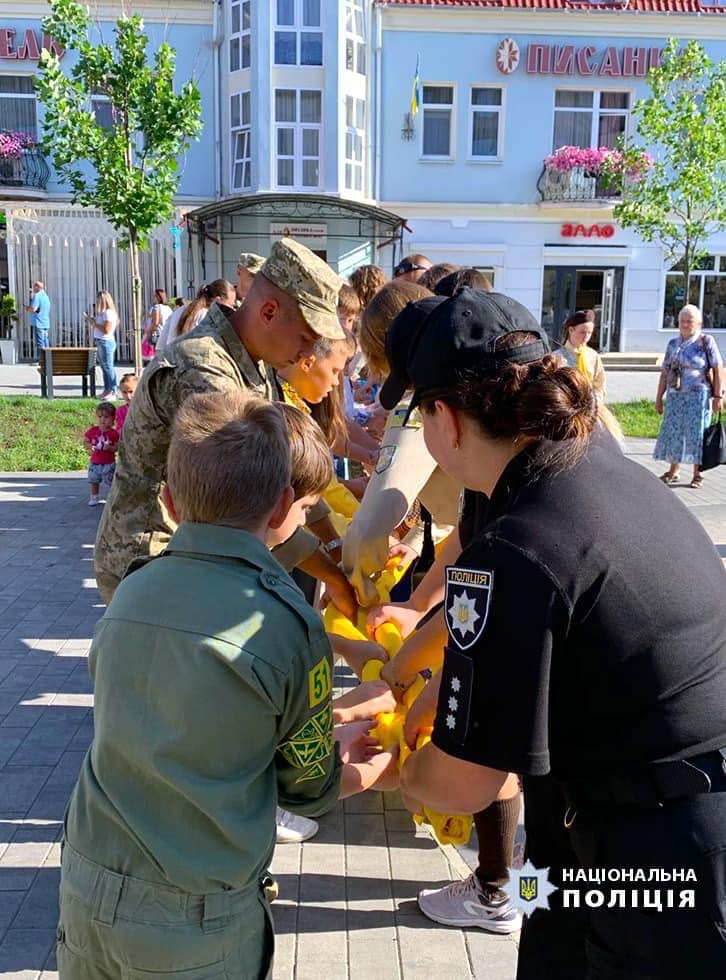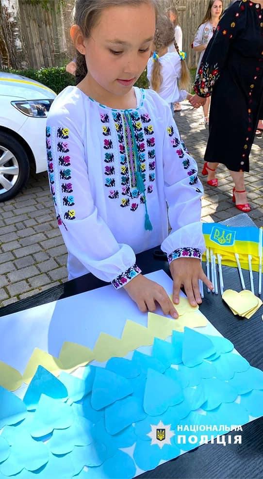 З вихованцями «Першої Ластівки» поліцейські спільно з дітками власноруч зробили символічний прапор з синьо-жовтих сердець. В Коломиї на площі перед Музеєм писанкового розпису дітки розгорнули синьо-жовтий стяг.