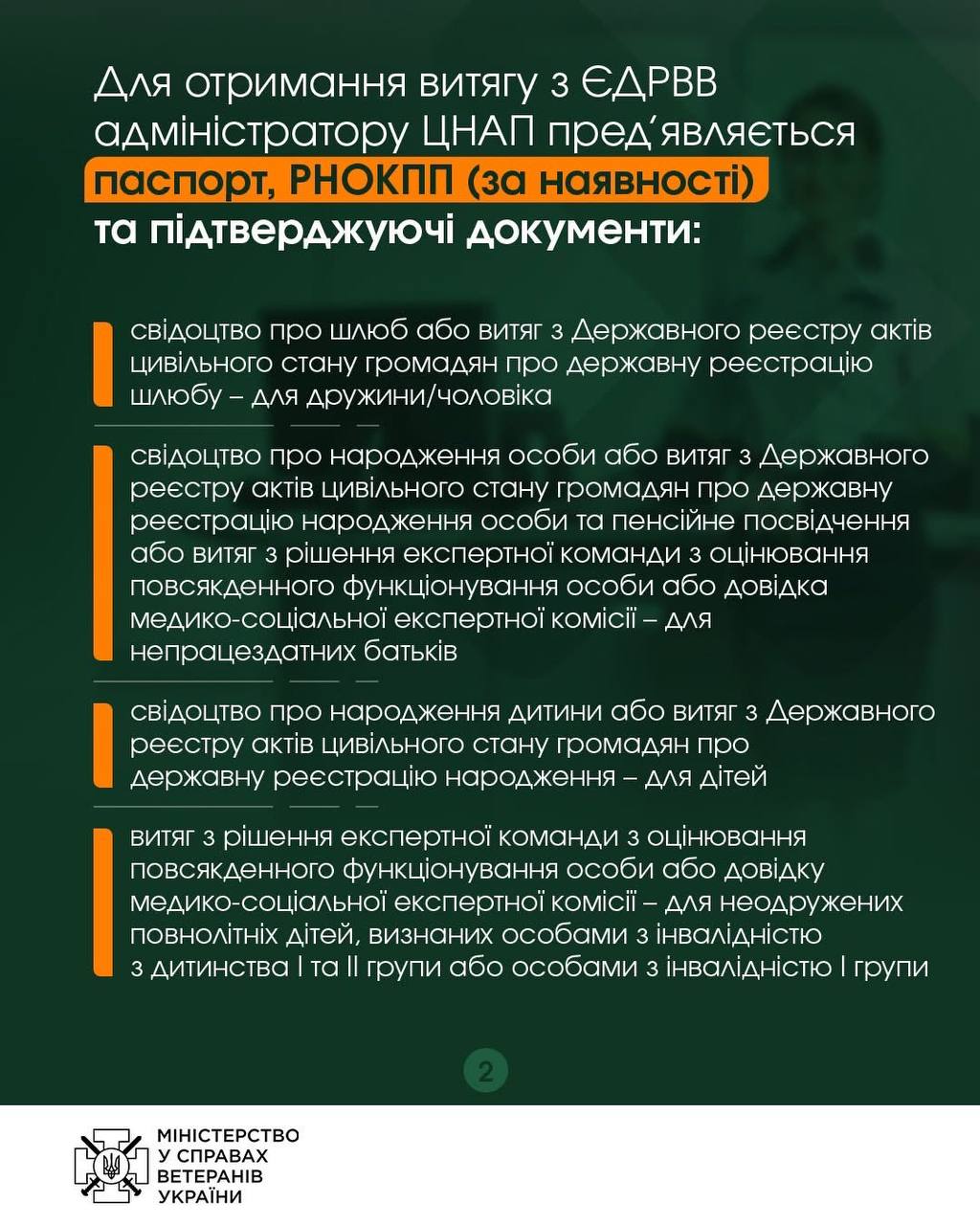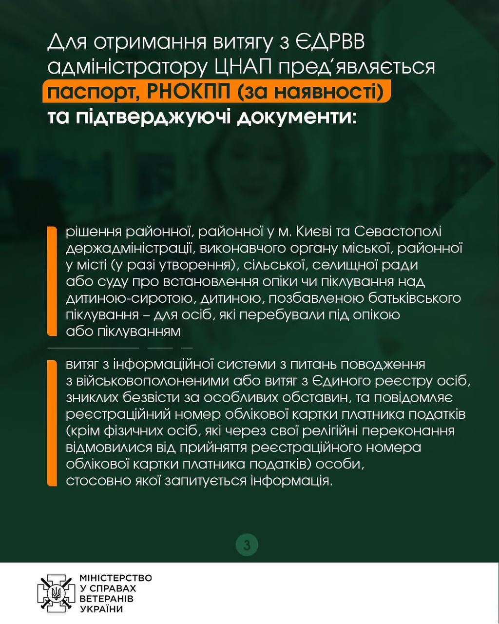 Мінветеранів: родини полонених і зниклих безвісти ветеранів можуть отримати витяг з ЄДРВВ у ЦНАП