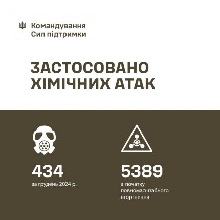 У грудні 2024 року підрозділи радіаційної, хімічної, біологічної розвідки Сил підтримки Збройних сил України зафіксували 434 випадки застосування таких боєприпасів.