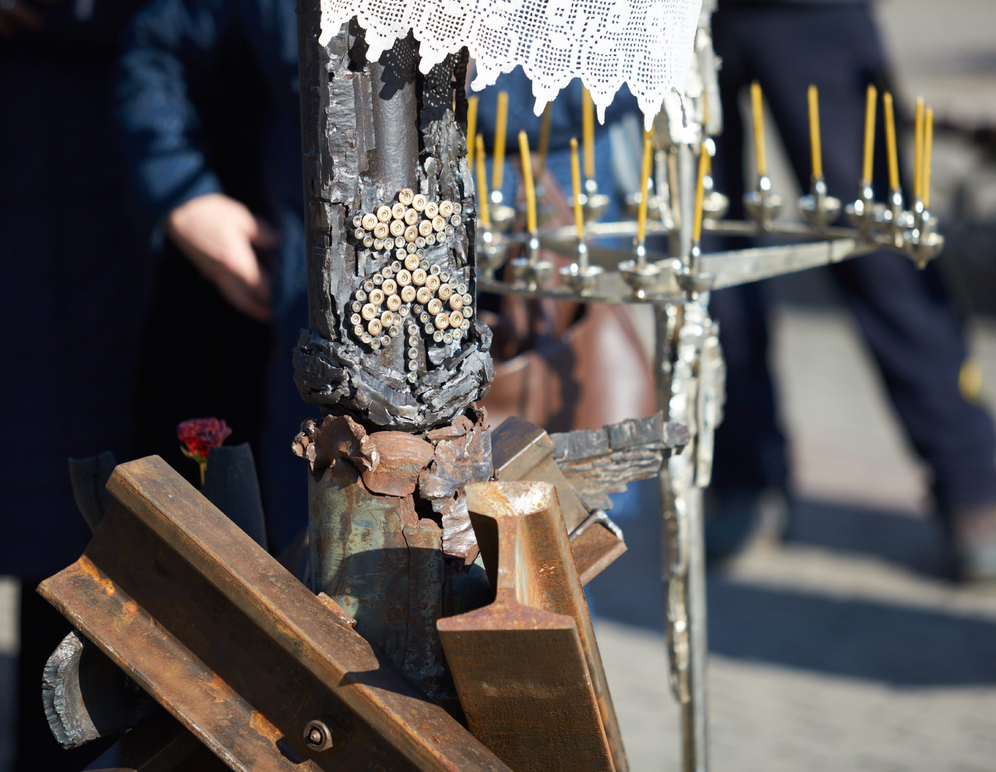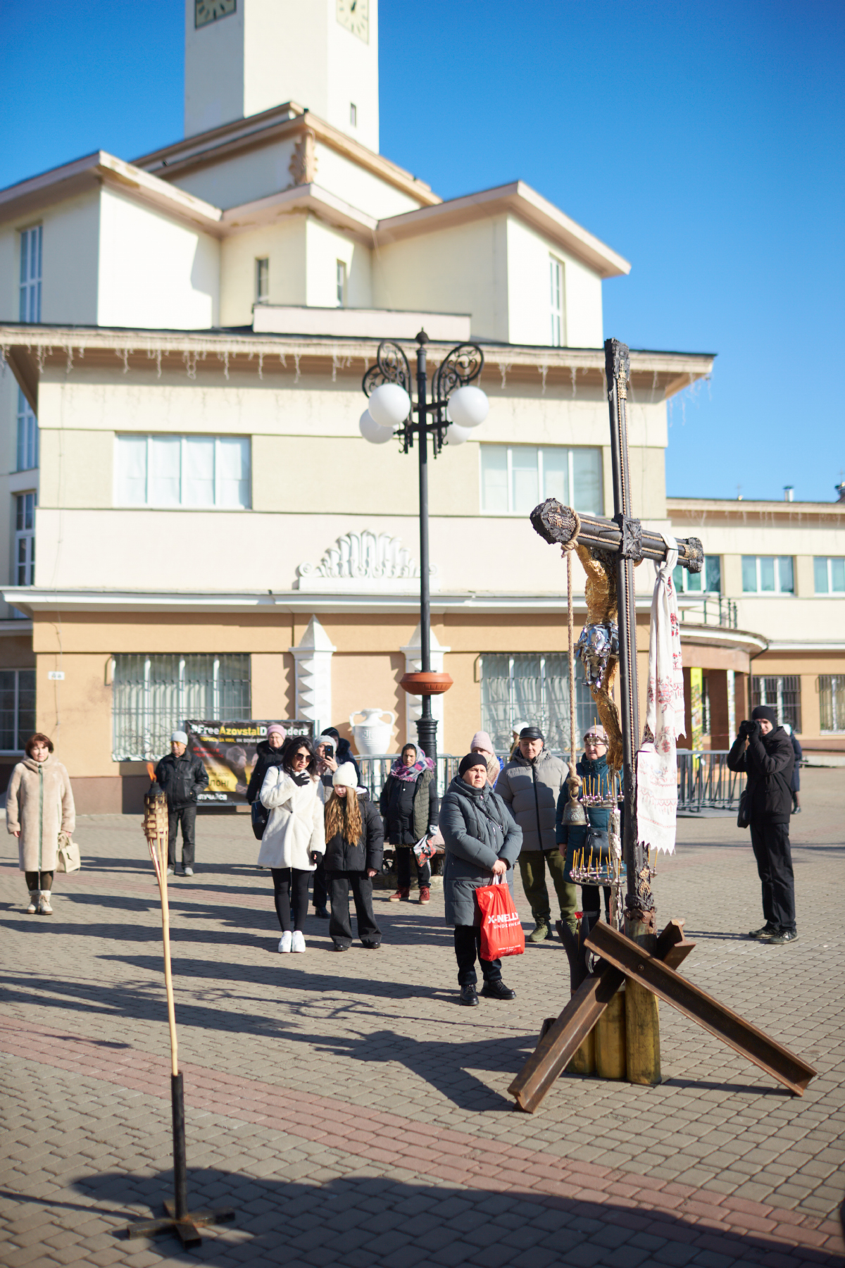 Інсталяцію вагою в 1 тонну привезли волонтери Міжнародного благодійного фонду «Душа України». Чотириметровий Хрест Миру із Розп’яттям можна буде побачити 9 та 10 лютого на площі Ринок з 9.00.