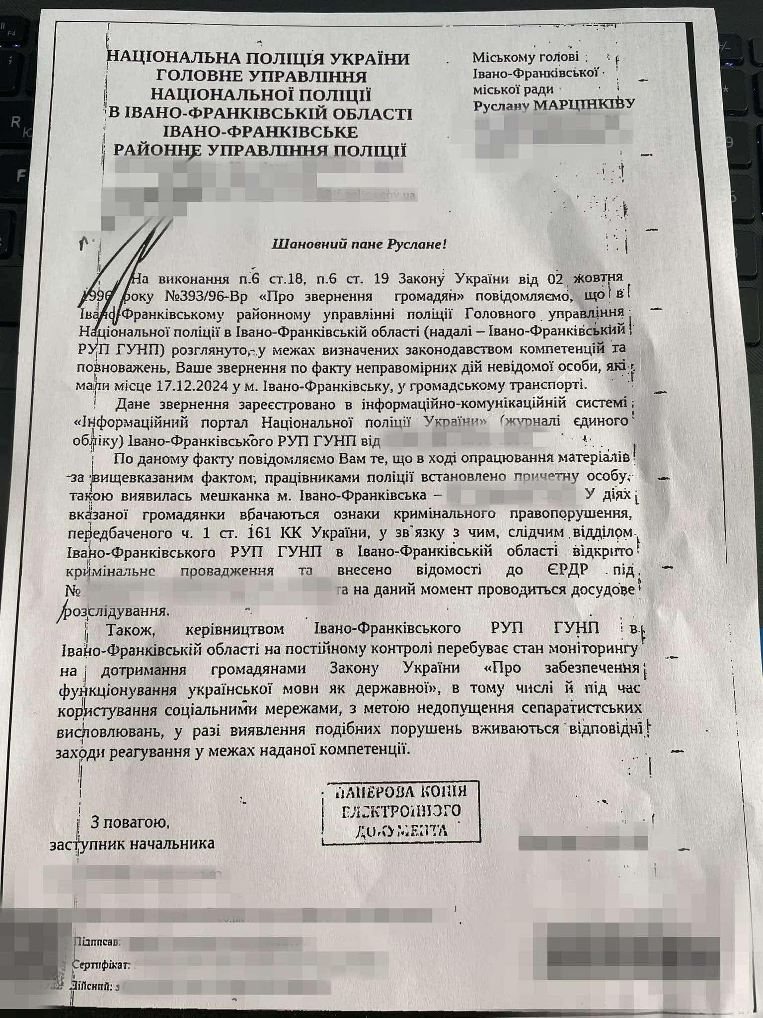 Поліція встановила її особу і відкрила кримінальне провадження.