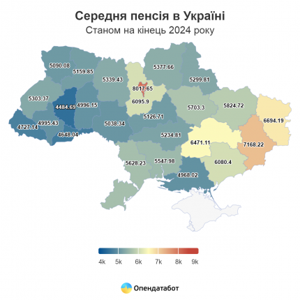 За даними Пенсійного фонду України, середня пенсія на Івано-Франківщині на кінець 2024 року становила 4 995,43 грн, що на 23% менше від середнього показника по країні (5 789 грн).