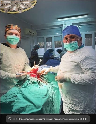 Хірургічна бригада: хірург, кандидат медичних наук, доцент кафедри онкології ІФНМУ Іван Костишин; асистент Петро Михайлюк та операційна медсестра Світлана Гавловська.