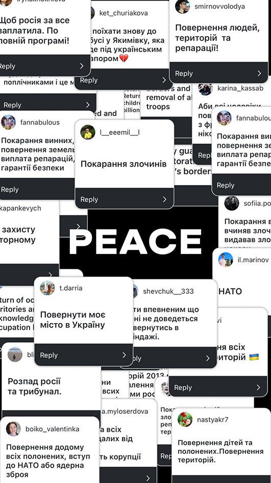 “На хвилі уваги до українців ми маємо унікальний шанс зробити так, щоби світ почув нас і ці обговорення враховували голос України. Для цього ми ініціювали кампанію #VoicesOfJustPeace у соцмережах і закликаємо всіх небайдужих українців ділитись своїм баченням того, що таке справедливий мир. Жодних дискусій про Україну без України!”