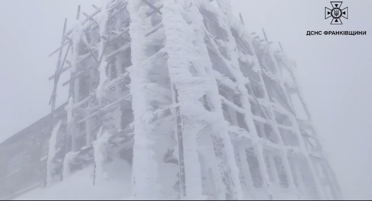 На вершині гори Піп Іван випало близько 30 сантиметрів снігу, а також сильні пориви вітру та обмежена видимість.