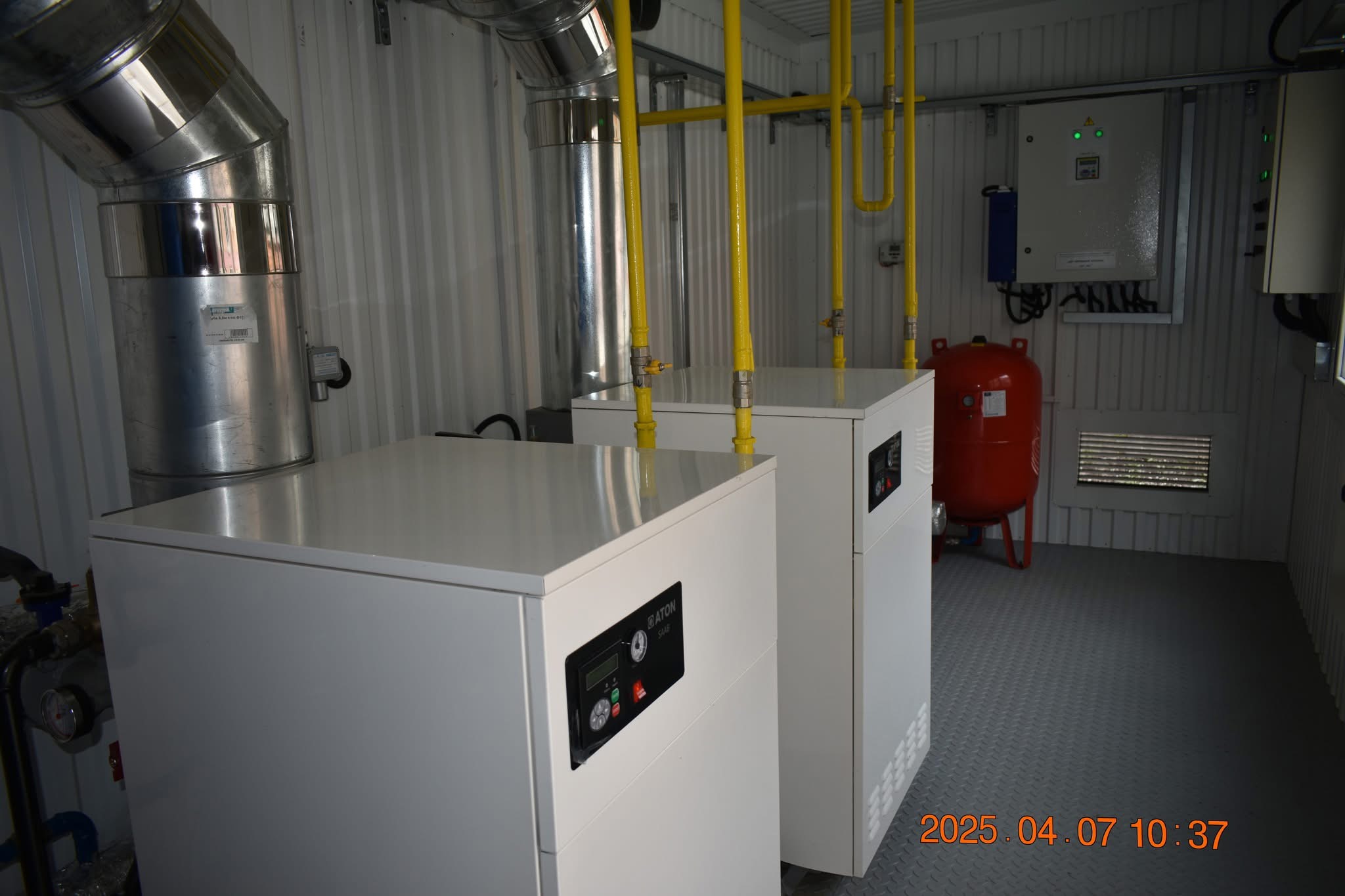 Модульна котельня оснащена сучасними енергоекономічними газовими котлами вітчизняного виробництва «АТОН», насосами німецького виробництва «Wilo» та системою підготовки води.