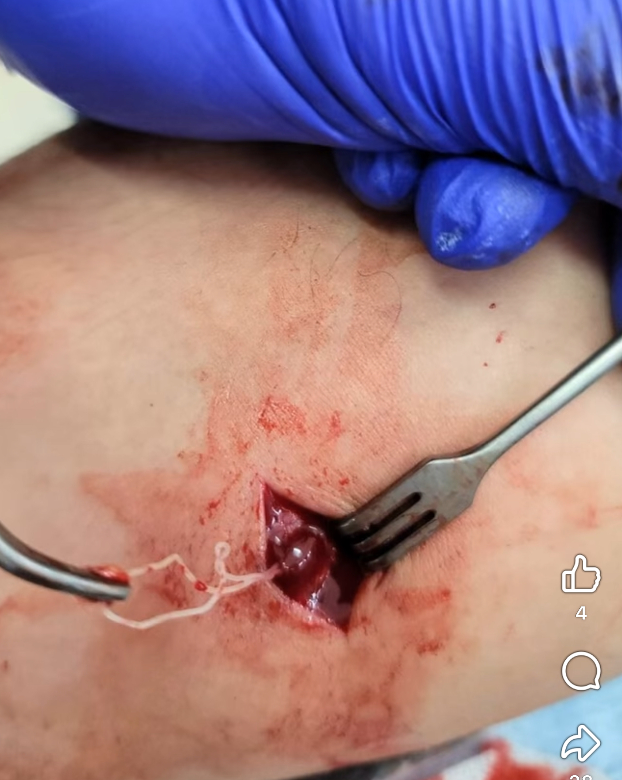 Під час хірургічного втручання з руки дістали дирофілярію – паразита, що потрапляє до людини через укус комара й може жити під шкірою, в оці чи навіть у внутрішніх органах.