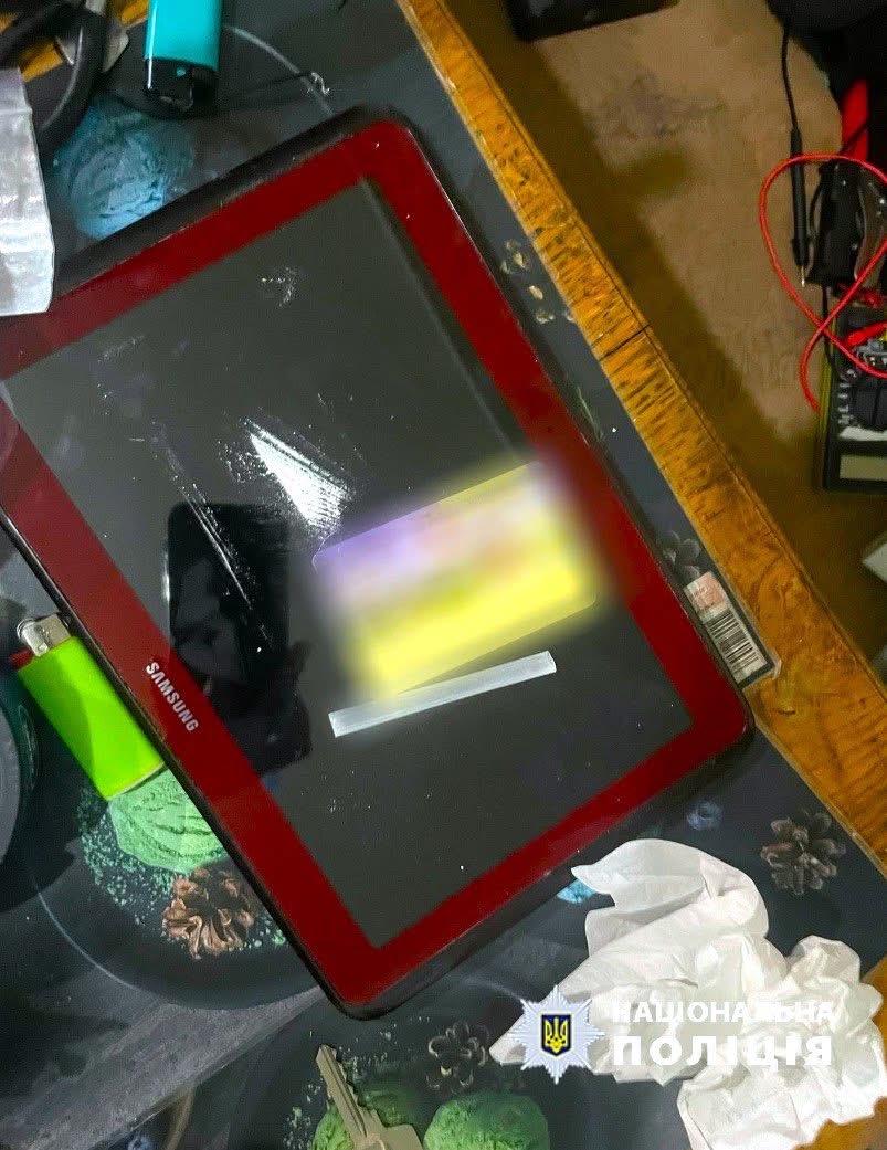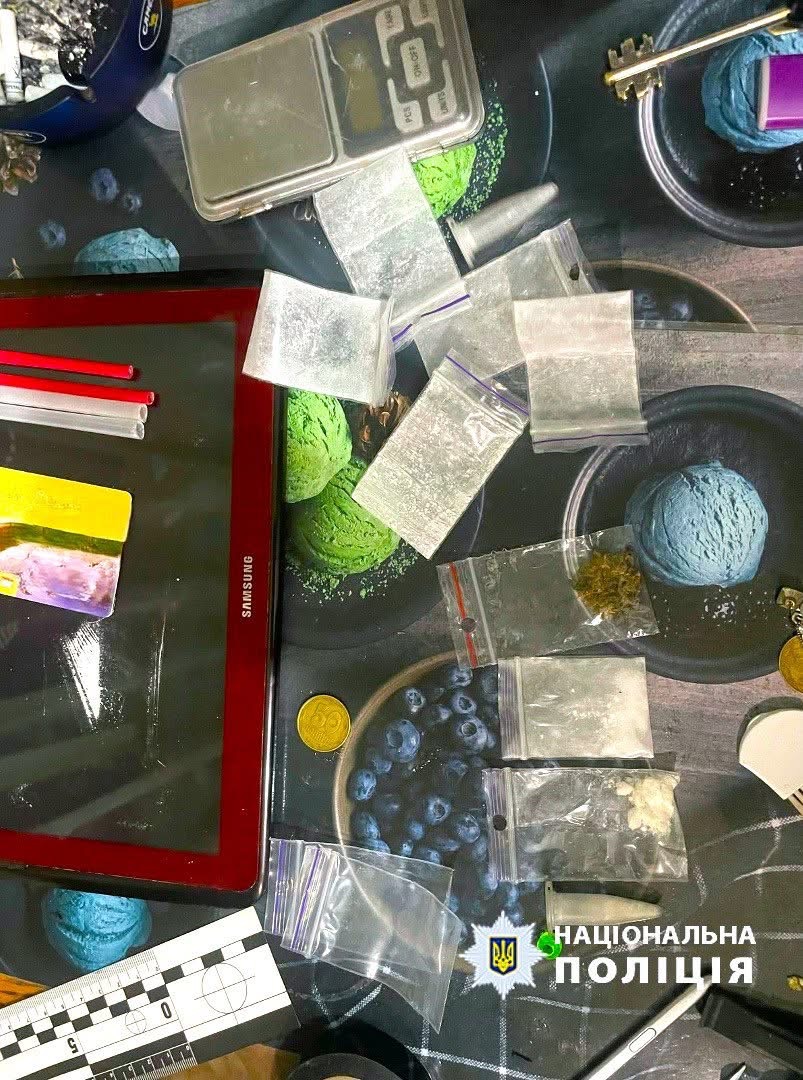 У ході невідкладного обшуку за місцем проживання наркозакладчика поліцейські вилучили ваги, фасувальні та пакувальні матеріали, мобільний телефон, на якому зафіксовані факти злочинної діяльності, та згортки з наркотичними засобами та психотропами.