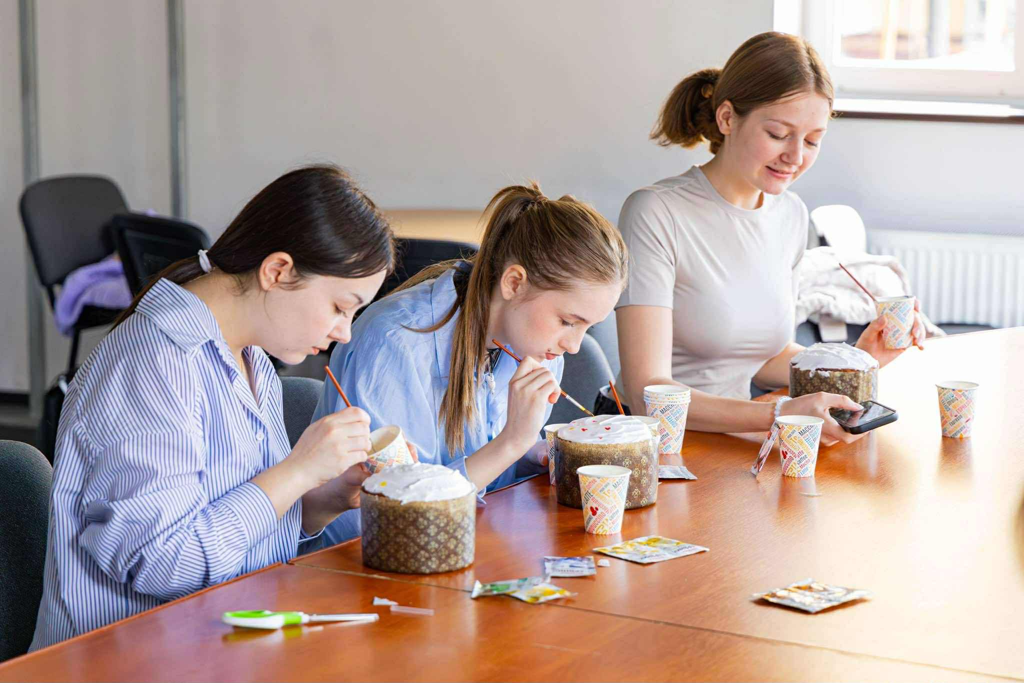 Окрім цього, члени Студентської ради Фахового коледжу УКД приготували та прикрасили великодні паски для жінок, які перебувають у складних життєвих обставинах, – матерів і дітей з центру «Дім для матері та дитини».