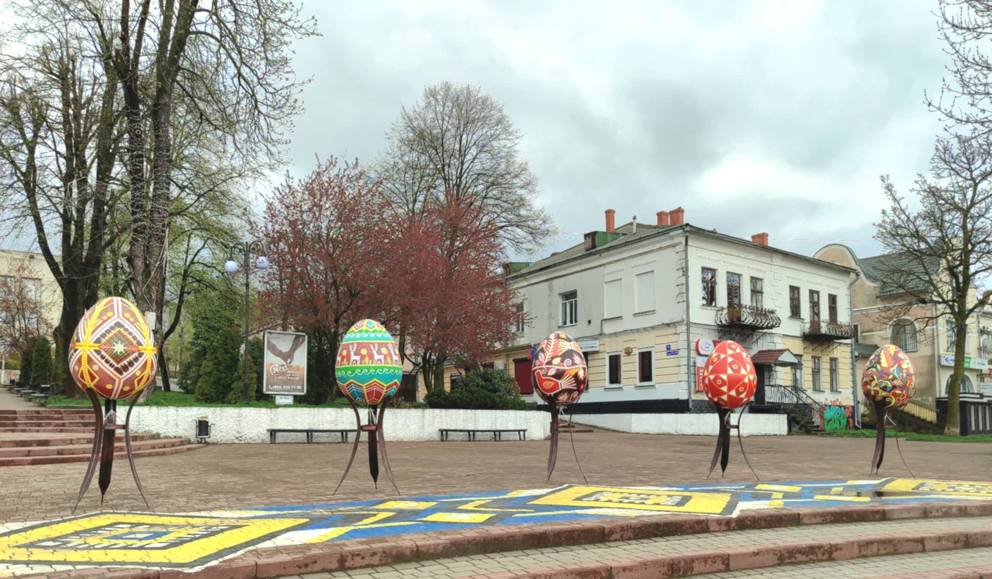Площа Героїв на кілька днів перетворилася на святкову галерею просто неба. Цьогоріч писанки милуватимуть око калушан та гостей міста до 23 квітня.