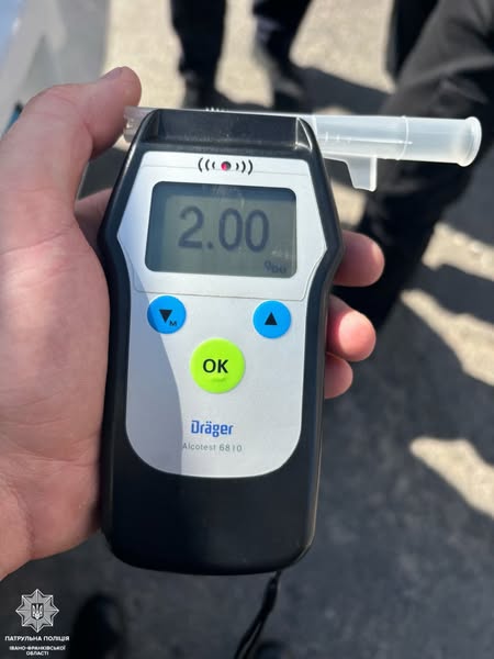 Під час спілкування з водієм патрульні виявили у нього ознаки алкогольного сп’яніння. Чоловік погодився пройти освідування на місці. Результат тесту — 2 проміле алкоголю, що у 10 разів перевищує допустиму норму.