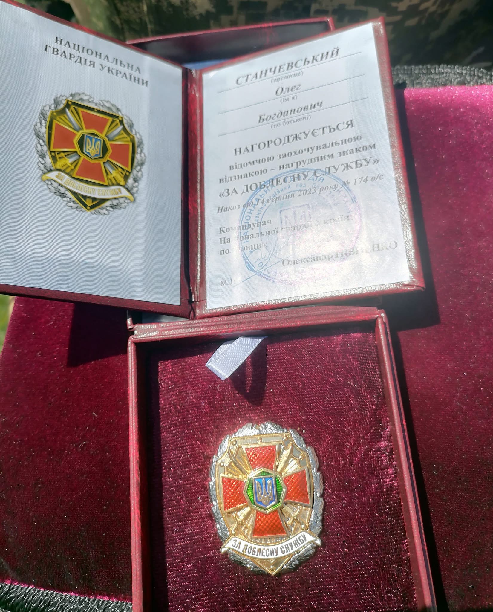 Олег з друзями в перші дні війни став на захист України, воював у багатьох гарячих точках. За час служби був нагороджений нагрудним знаком «За доблесну службу» та медаллю «Ветеран війни».