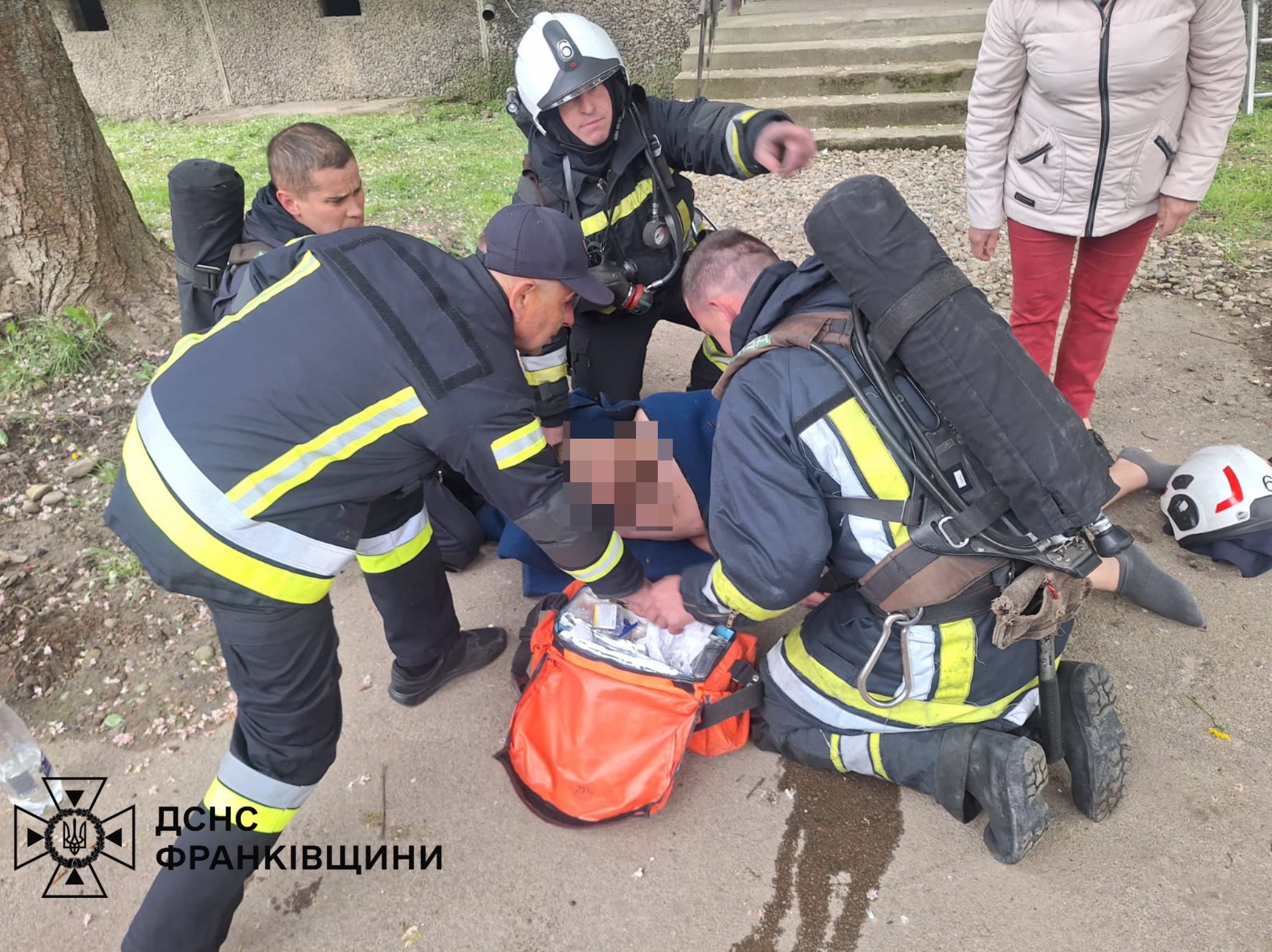 Вогнеборціо винесли на свіже повітря чоловіка, який перебував у задимленому приміщенні. В подальшому чоловіка передали працівникам екстреної медичної допомоги.
