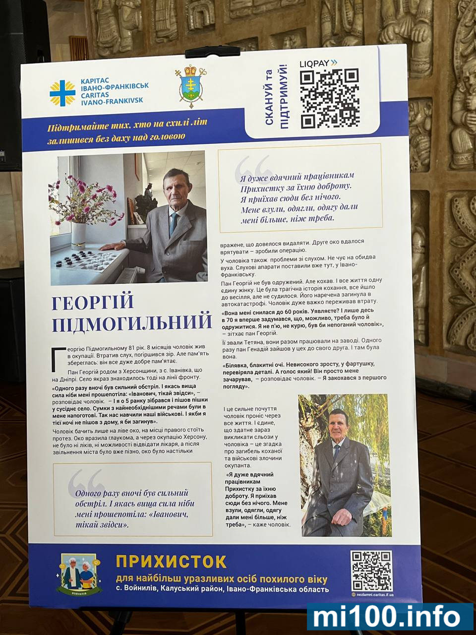 Георгію Підмогильному 81 і він родом з села Іванівка, що на Херсонщині. Іванківка була лінією фронту тоді, коли чоловік зважився поїхати з рідного дому. Сім’ї в Георгія немає. Через окупацію його погіршилось – частково втратив слух і зір, але залишилась пам’ять.
