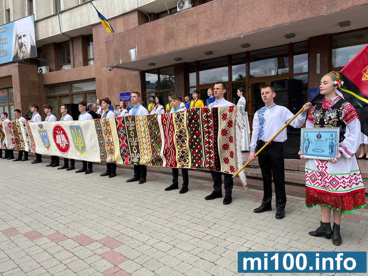 У серці Івано-Франківська, на площі перед ОВА, відбулося яскраве дійство до Дня вишиванки. Студенти та викладачі Фахового коледжу культури і мистецтв міста Калуша влаштували справжнє свято української культури, привізши до міста унікальний експонат — «Рушник єдності», який вже встиг стати національним символом єднання.