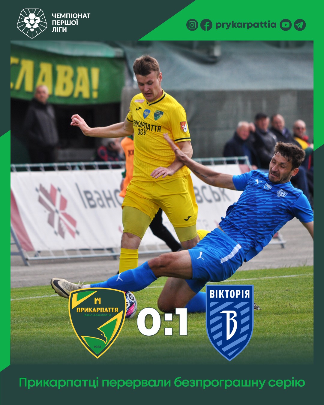 У центральному матчі 8-го туру “Прикарпаття” вдома мінімально поступилося лідеру групи “Вибування”, повідомляють у пресслужбі команди.