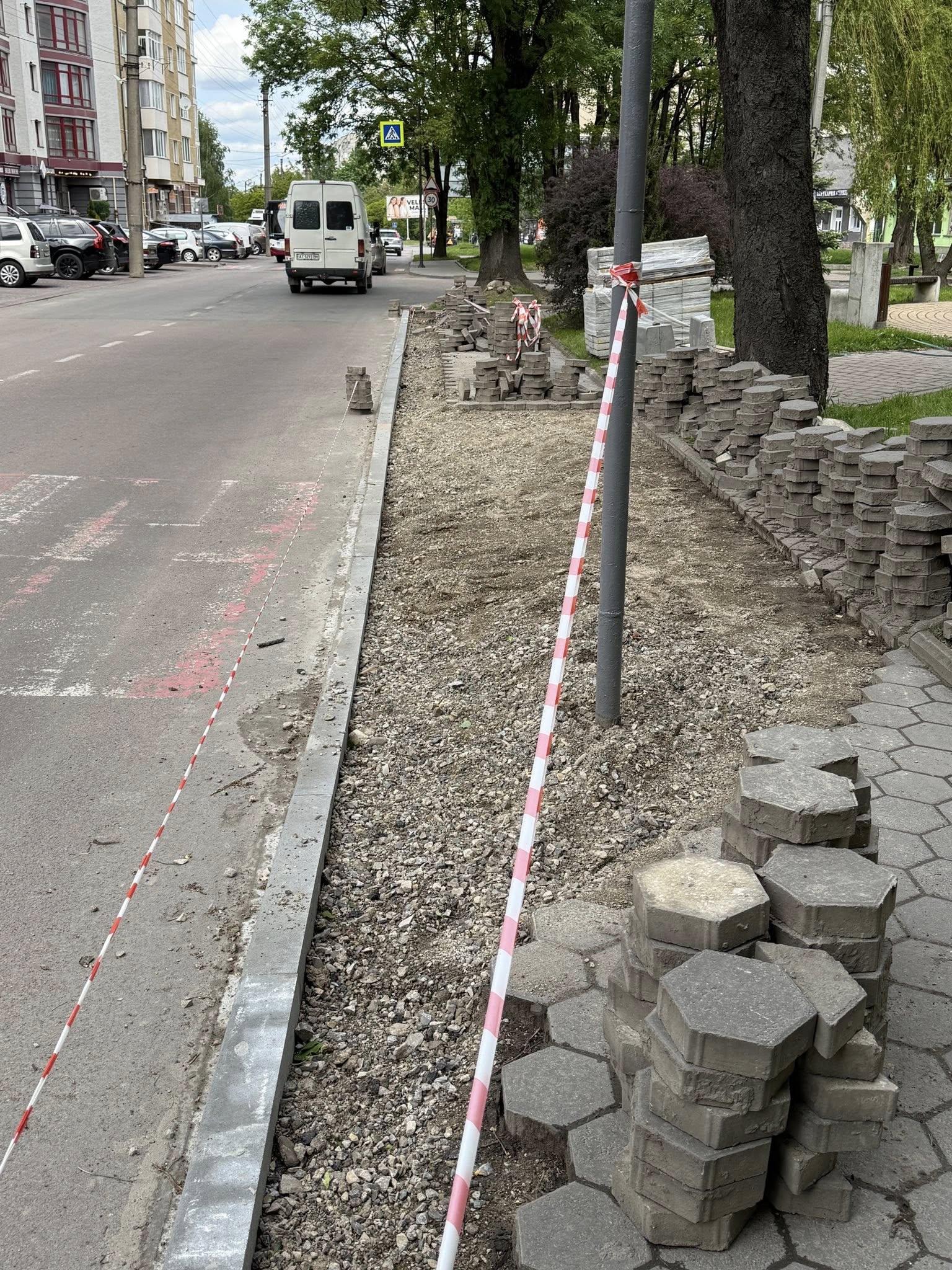 Івано-Франківськ стає зручнішим. На перехресті вулиць Вовчинецької, Героїв УПА та Коломийської тривають роботи з облаштування безбар’єрних тротуарів і безпечних пішохідних переходів.