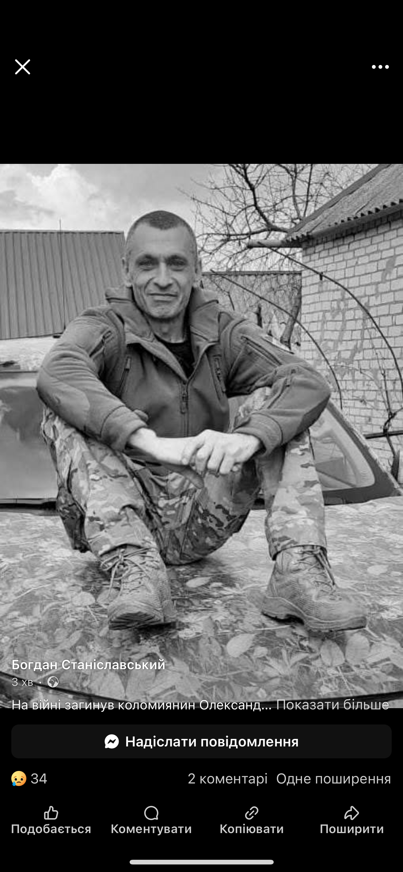 Висловлюю співчуття родині та близьким Олександра. Він боронив Україну від початку повномасштабного вторгнення, повернувши з-за кордону. Вічна памʼять та слава нашому захиснику, – пише голова громади Богдан Станіславський.