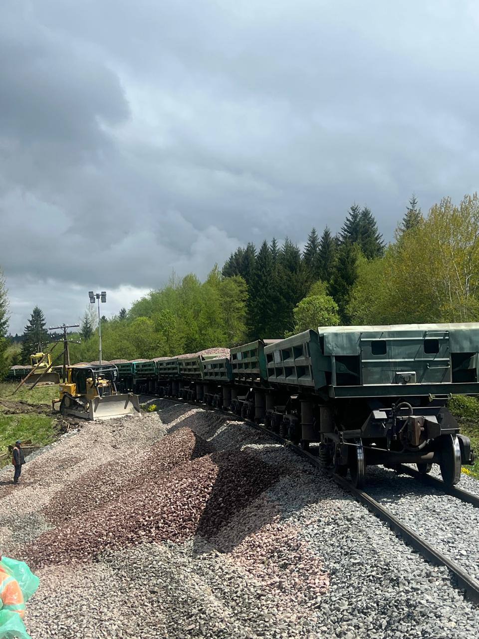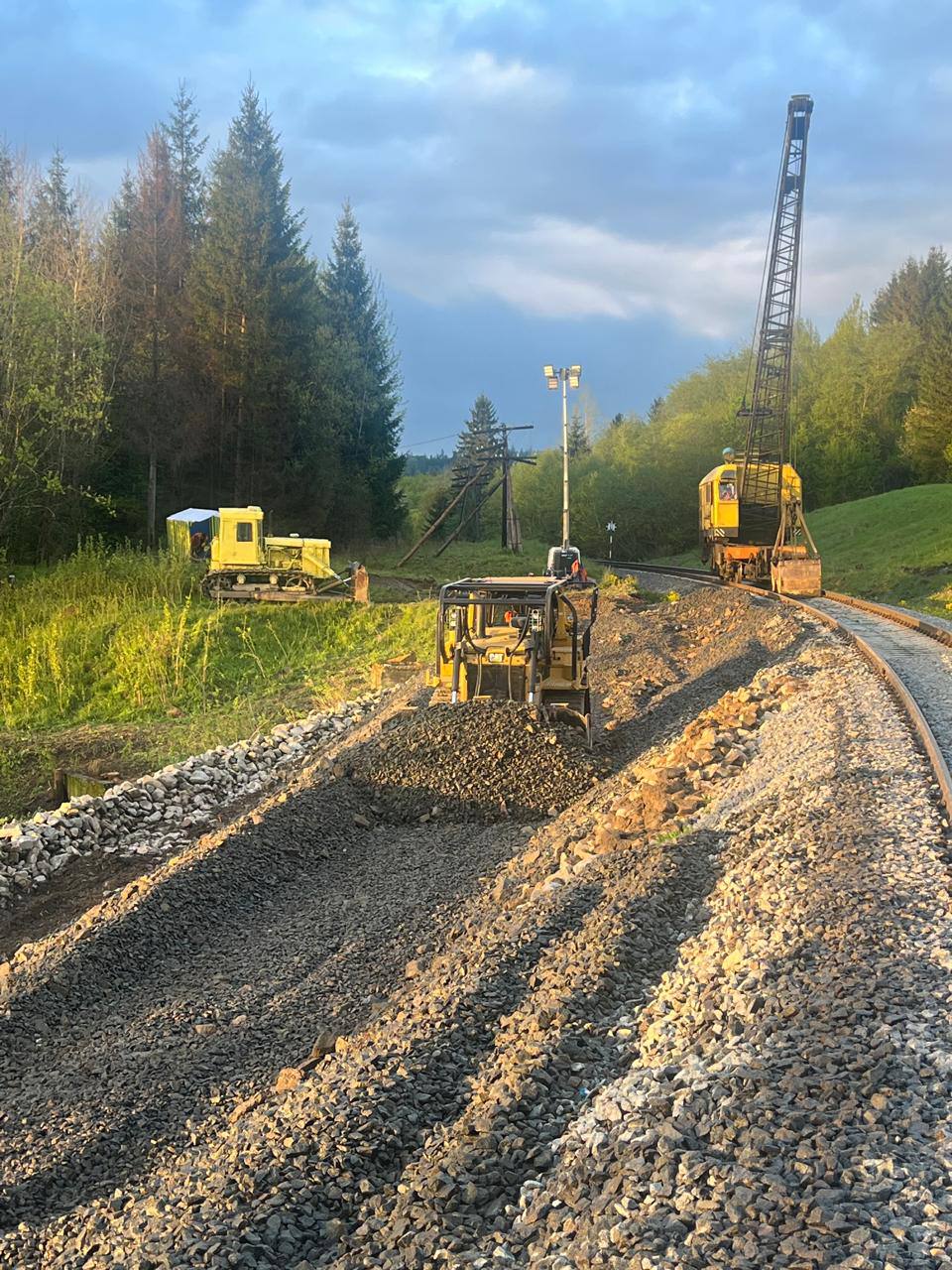 Укрзалізниця продовжує невідкладні роботи з відновлення інфраструктури в районі просадки колії та зсуву земної породи. Для стабілізації ситуації кар’єри компанії перейшли на цілодобовий режим роботи, забезпечуючи безперебійне постачання бутового каменю на ділянку.