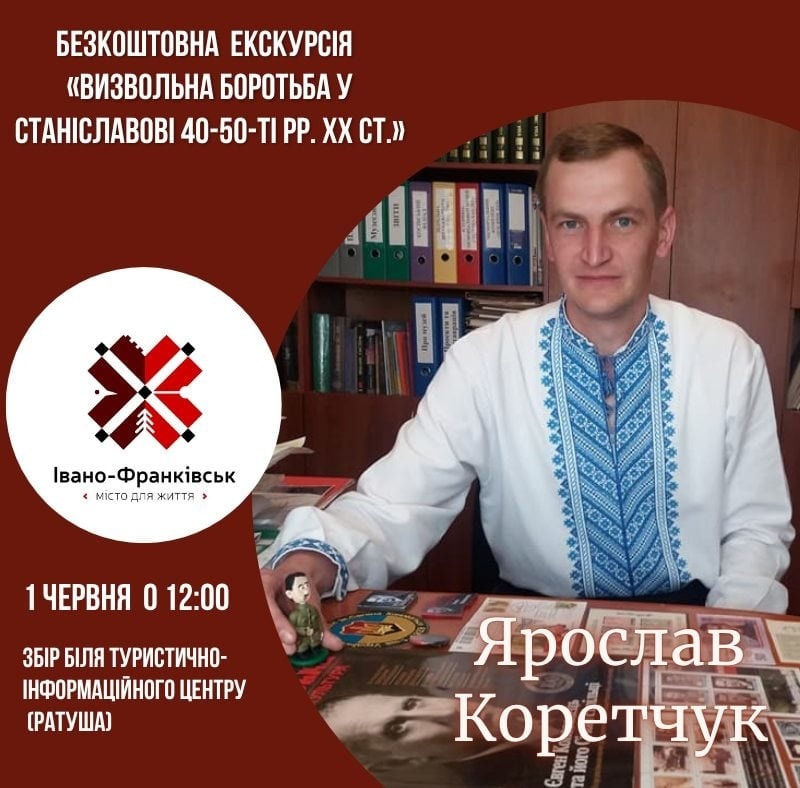 Історик і директор музею визвольної боротьби Ярослав Коретчук проведе благодійну екскурсію «Визвольна боротьба у Станіславові (40-50-ті рр. ХХ ст.)», повідомляють у пресслужбі міського голови Івано-Франківська Руслана Марцінківа.