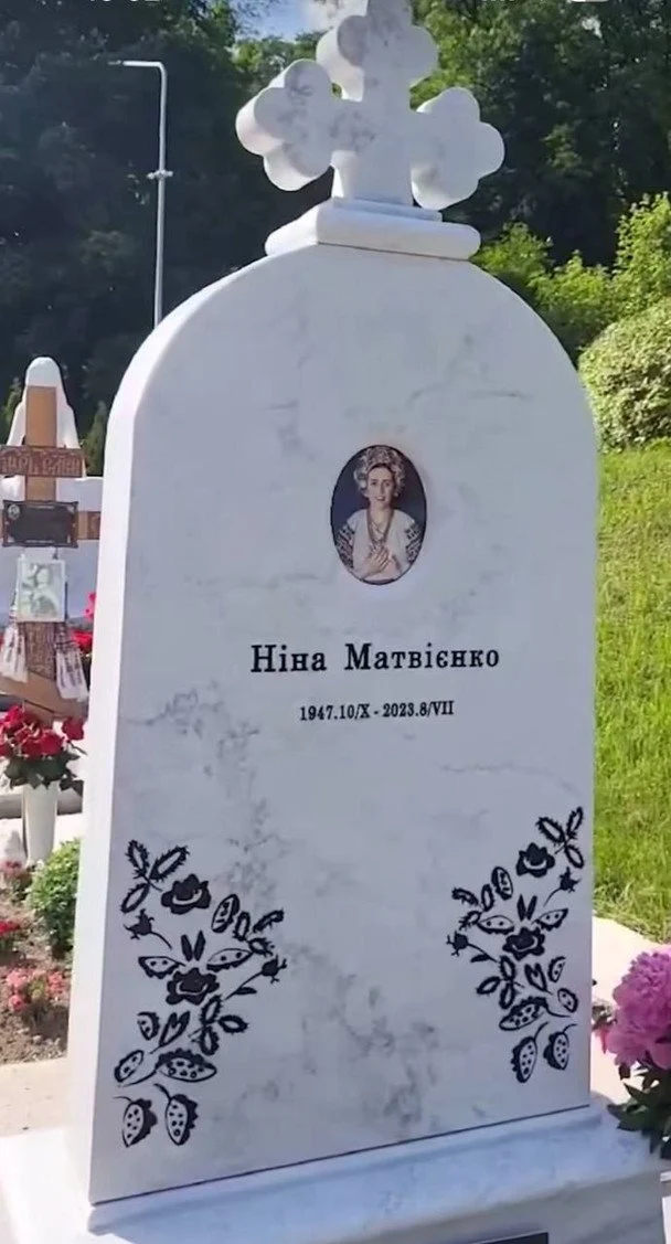 На Звіринецькому кладовищі в Києві з’явився пам’ятник на могилі легендарної української співачки, Народної артистки України Ніни Матвієнко, яка померла 8 жовтня 2023 року.