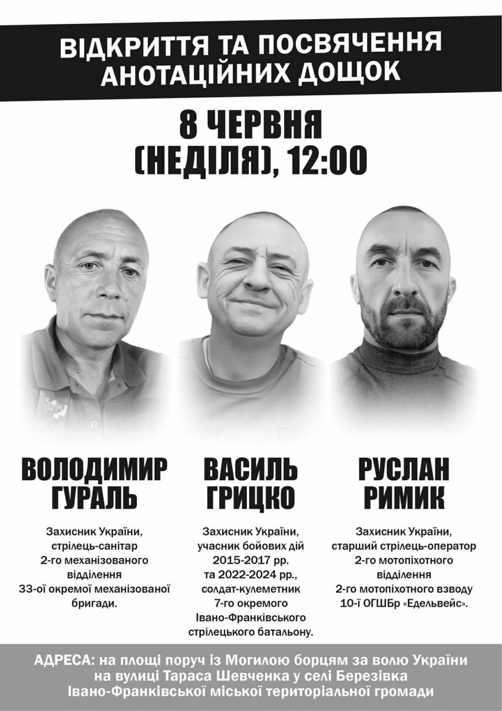 Володимир Гураль, Василь Грицко та Руслан Римик – загинули у боротьбі за Україну.