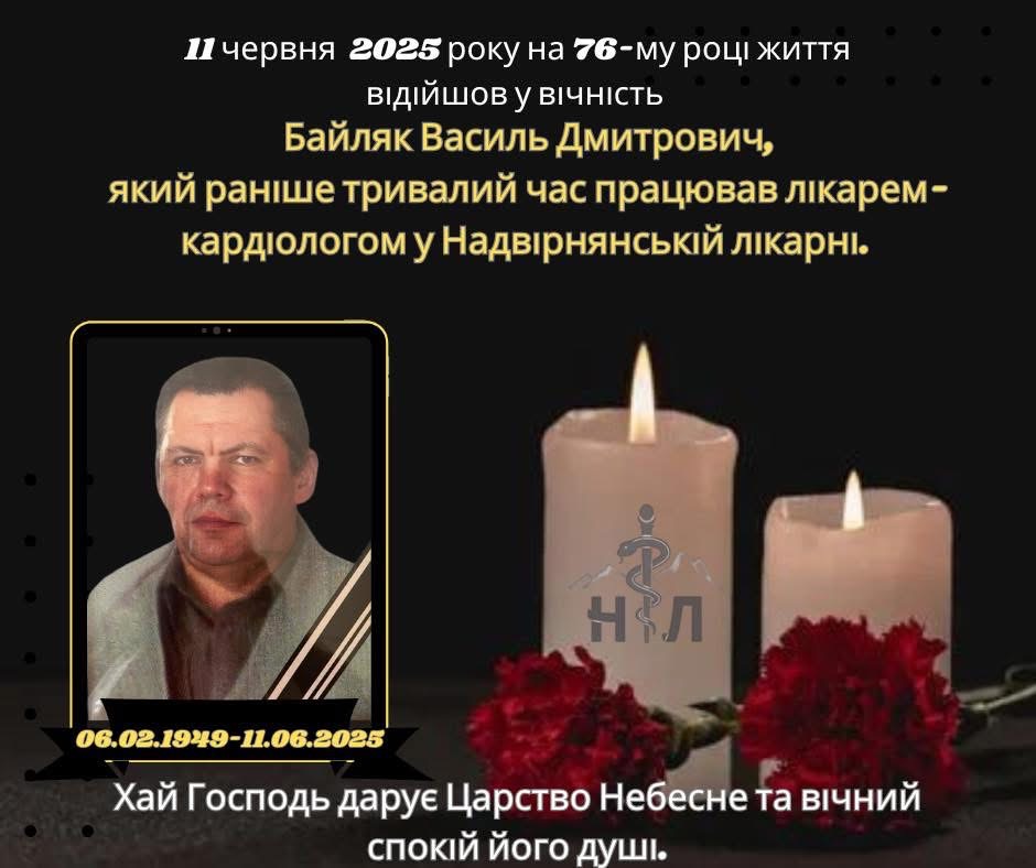 Сьогодні, 11 червня, відійшов у вічність Байляк Василь Дмитрович — лікар, якому довіряли, якого поважали, і якого пам’ятатимуть.
