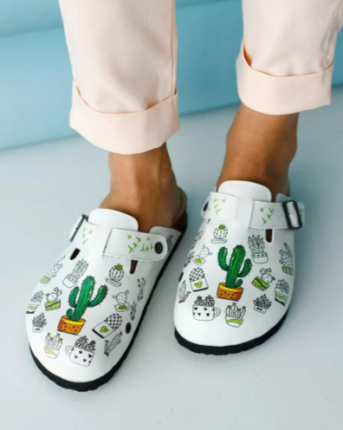 Звісно, не менш важливим є й зовнішній вигляд. Тож, сабо доступні в різноманітних дизайнах: від класичних моделей до варіантів із креативними принтами — серцями, інструментами, квітами чи тваринками. Це дозволяє обрати взуття, яке підкреслить вашу індивідуальність і водночас залишатиметься частиною професійного образу.