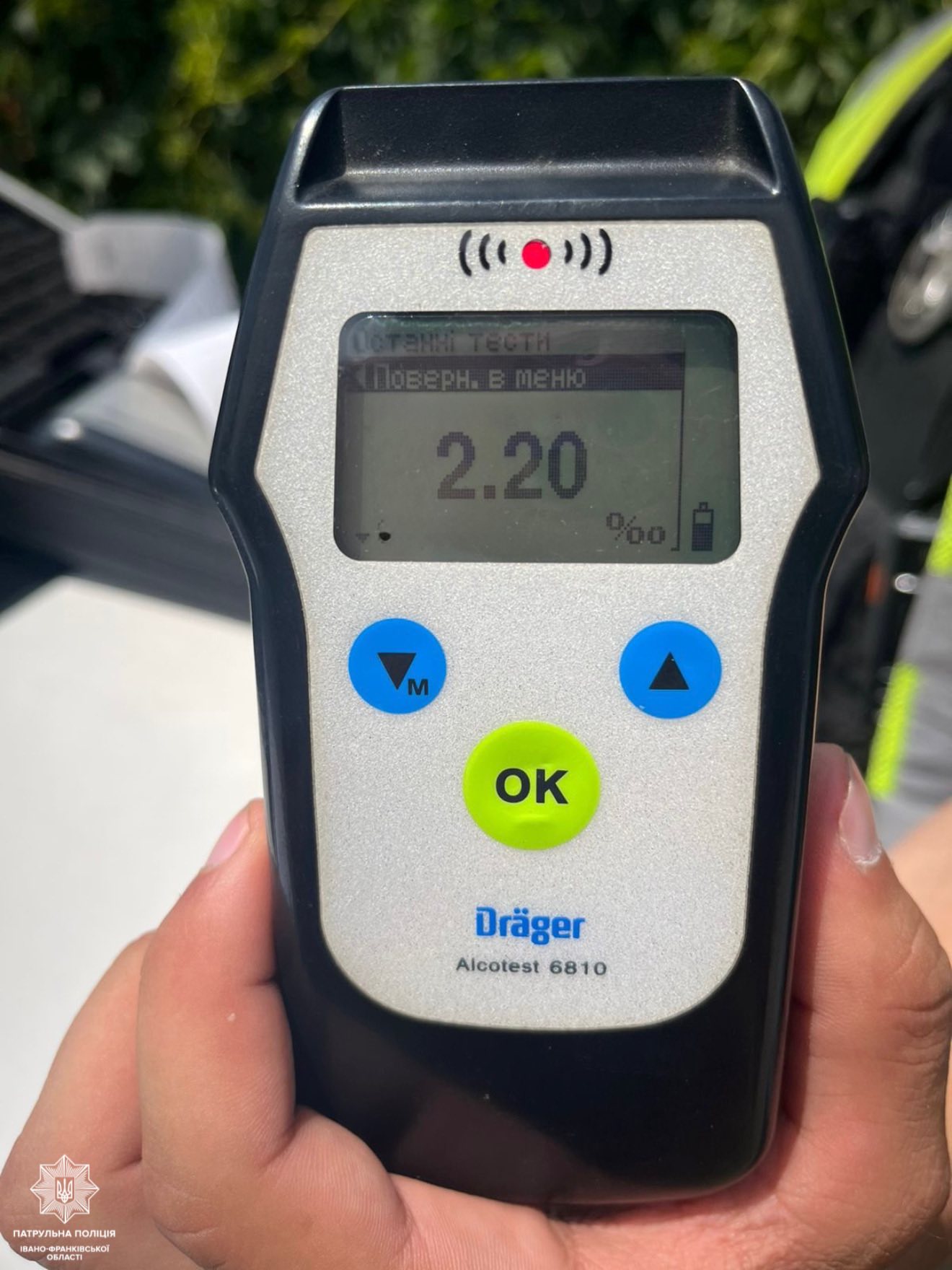 Під час спілкування з 39-річним водієм, патрульні помітили в останнього ознаки алкогольного сп’яніння. Водій пройшов освідування на місці. Результат — 2.20 проміле алкоголю.