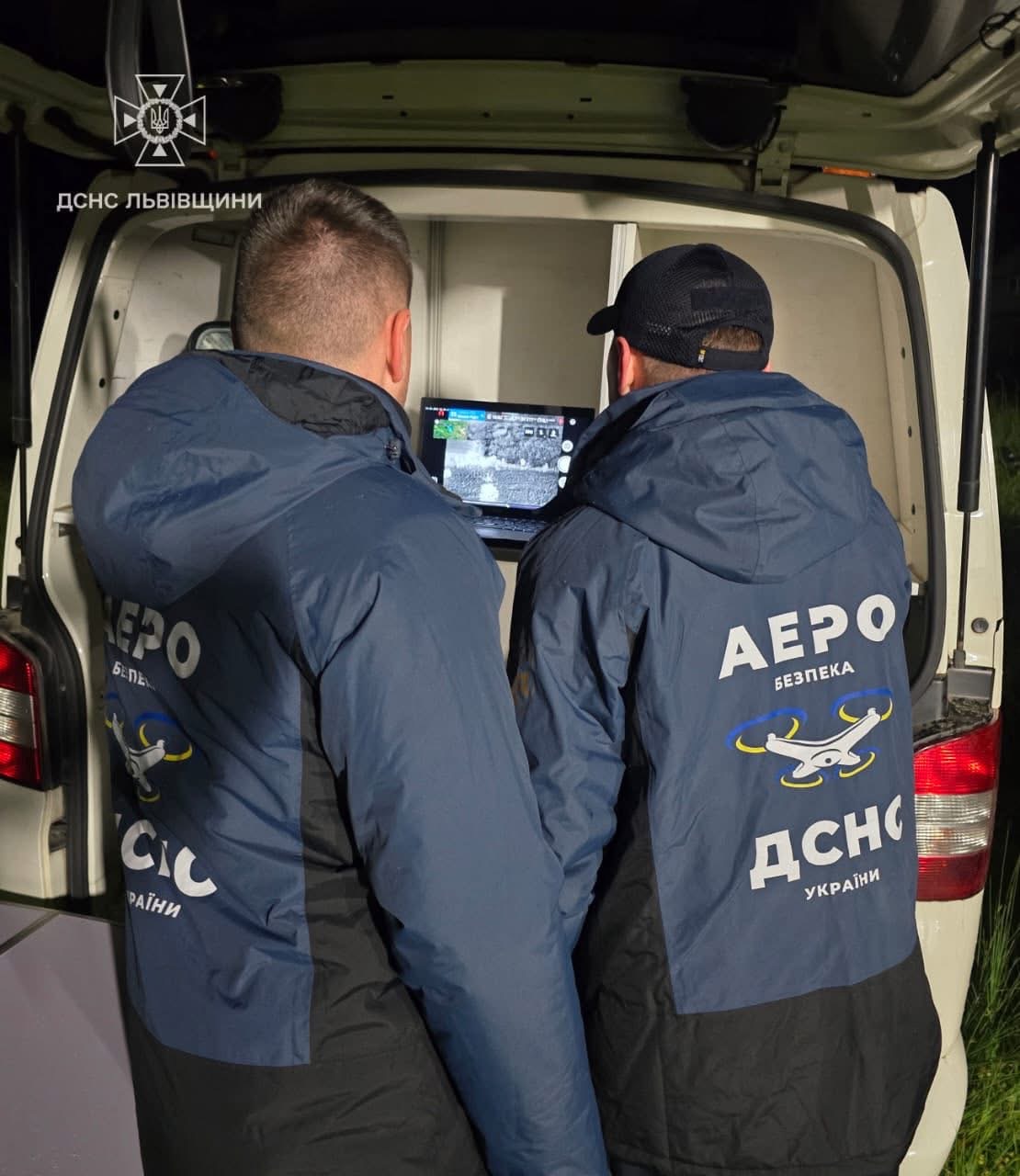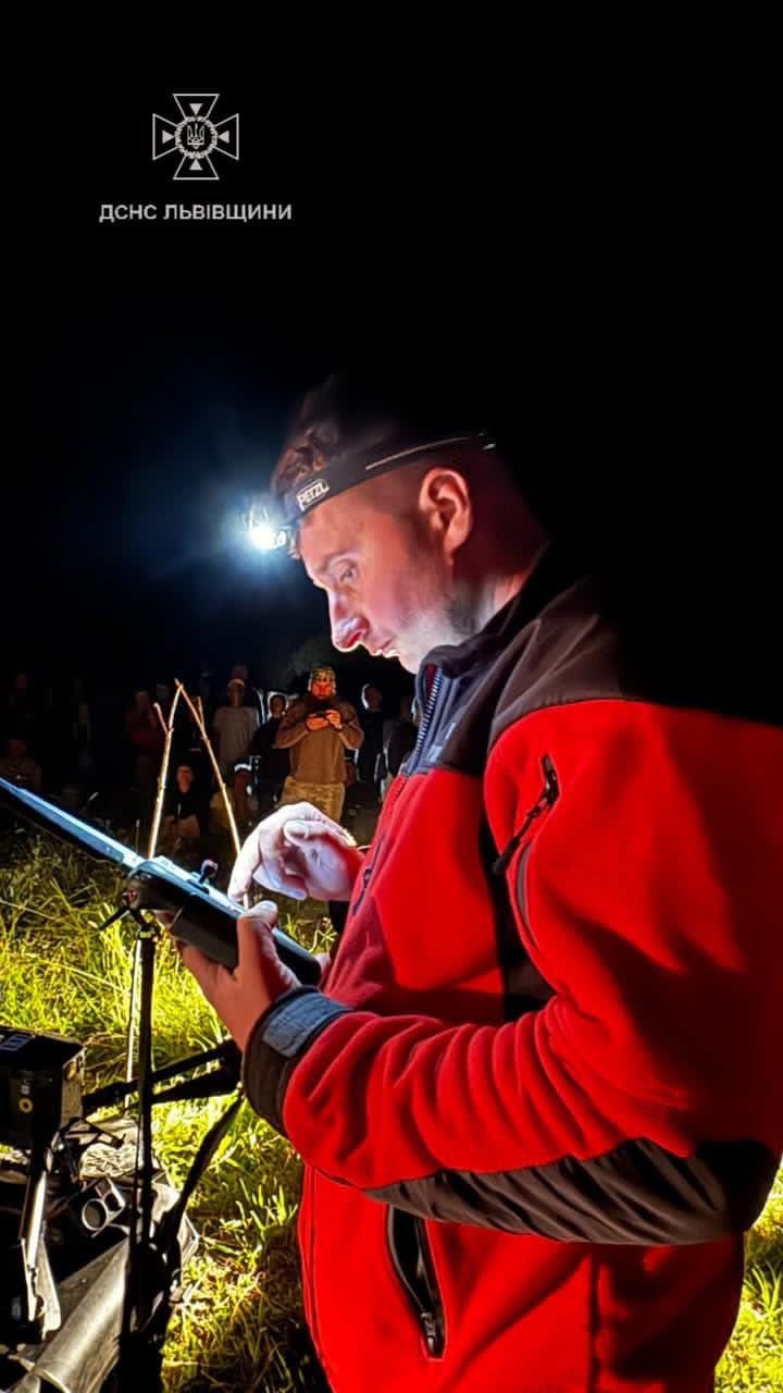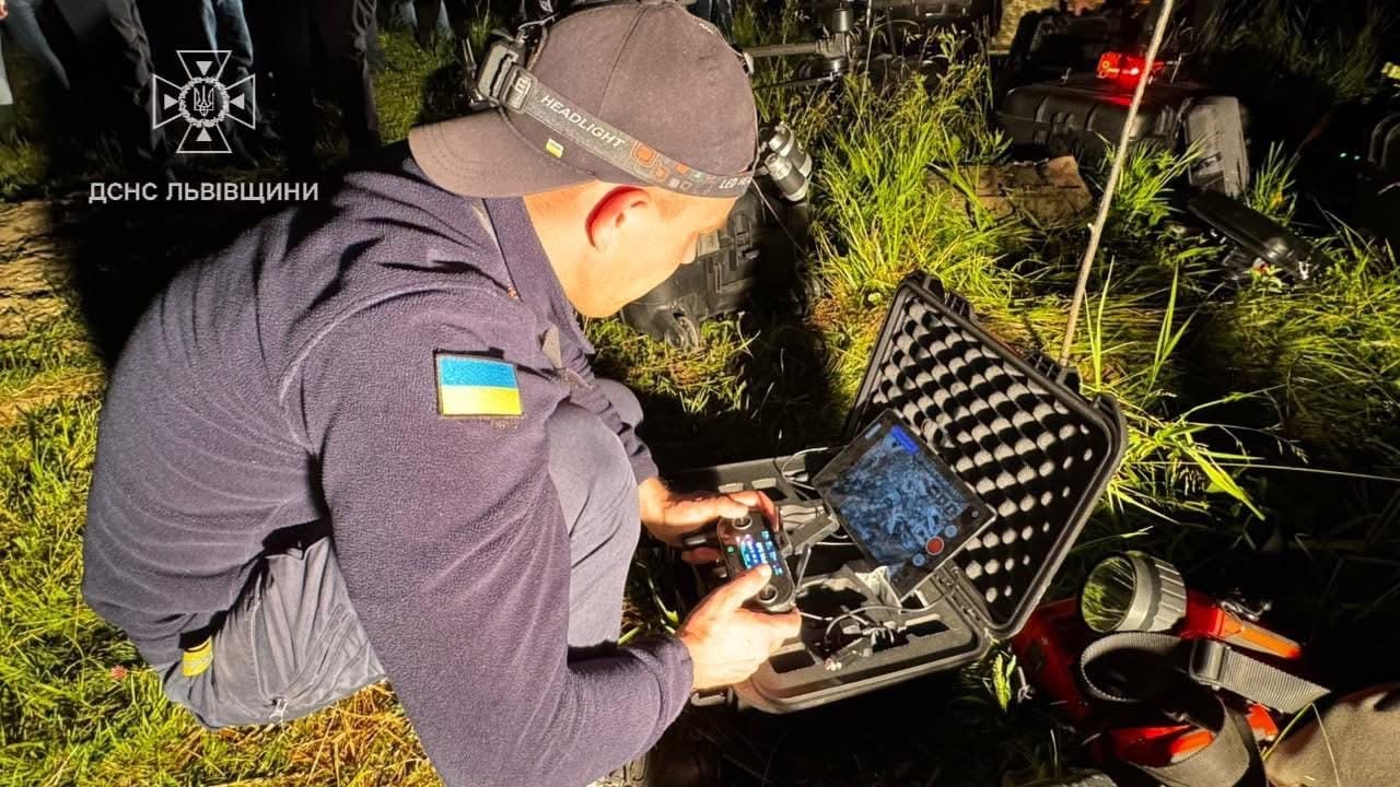 Працюють фахівці з дронами, а також кінологи зі службовими собаками.