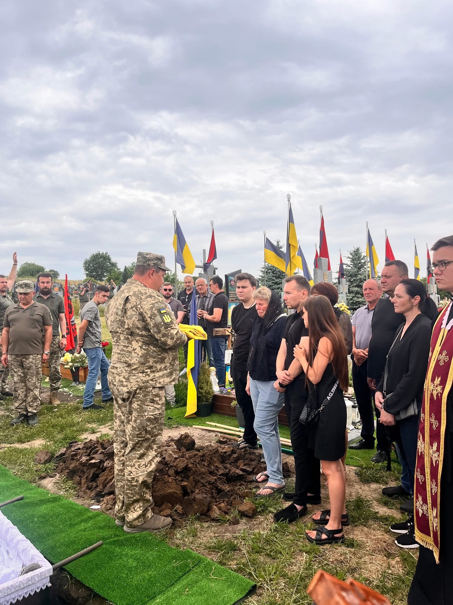 Майора Олександра Сацюка поховали з військовими почестями на Алеї Слави міського кладовища — поруч із побратимами, які віддали життя за Україну.